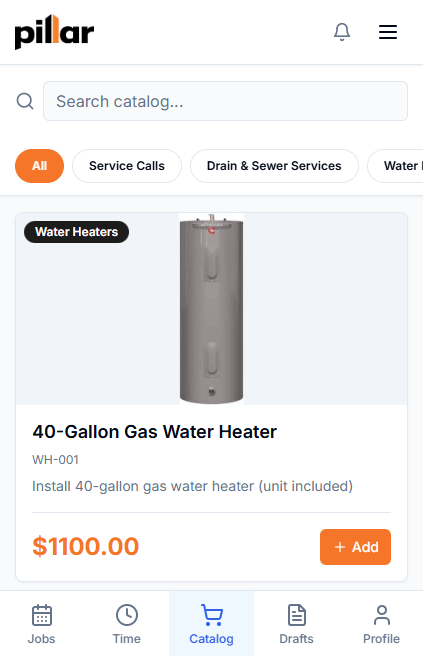 Your technician is already at the customer's home. Why make them call the office for pricing? With Pillar, they pull up your full price book, build a professional estimate on the spot, and get it signed before they leave.
