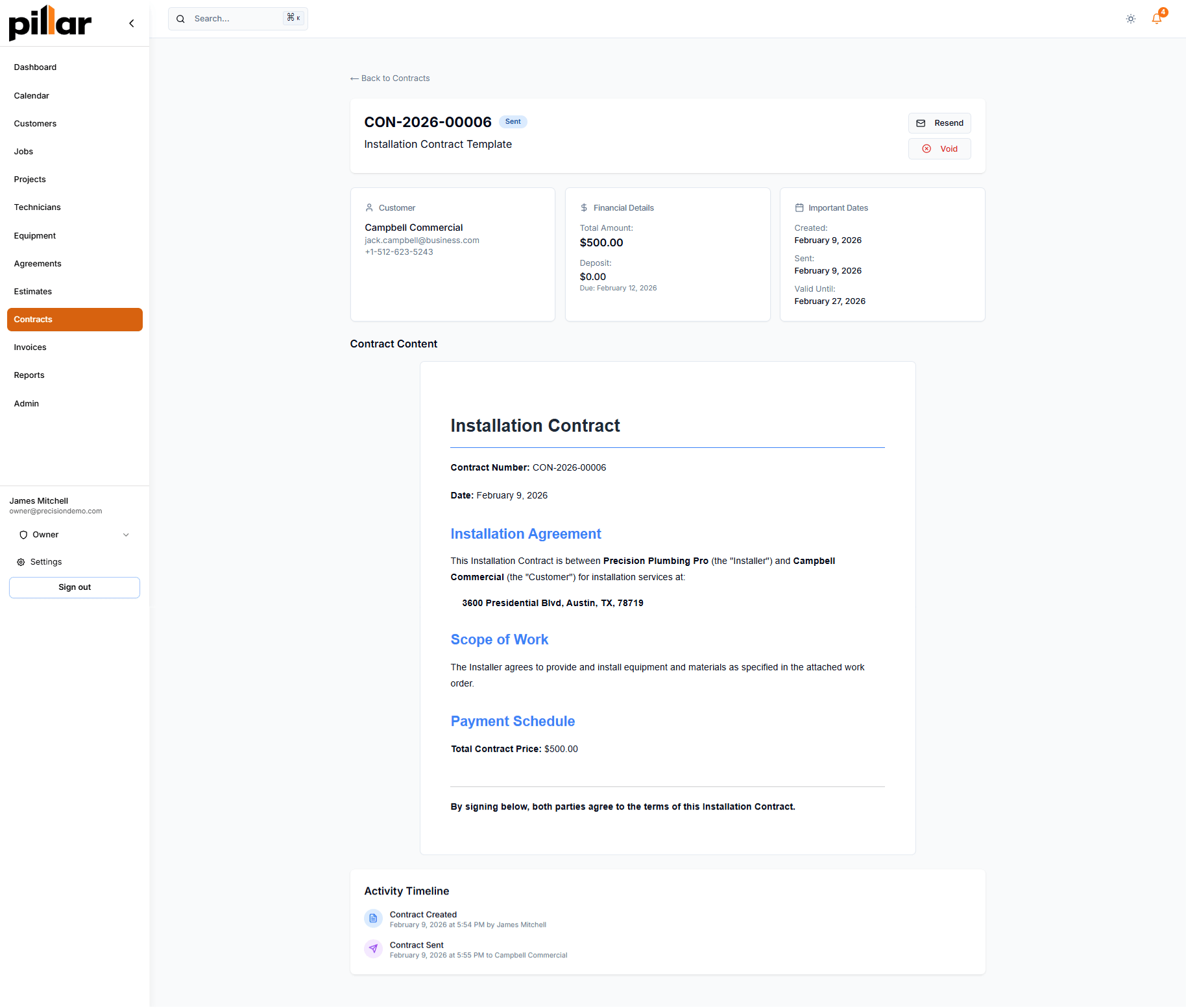 Schedule a demo and we will walk through how Pillar handles contract templates, customer approvals, and signature capture -- with your workflows in mind.